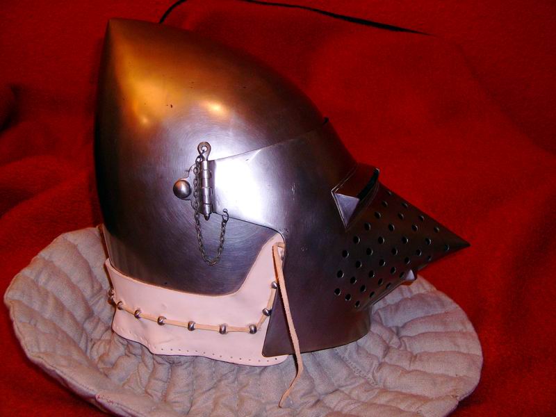 great helm and sallet (both by me); and 17th century pike pot (by an English craftsman named Cole).
