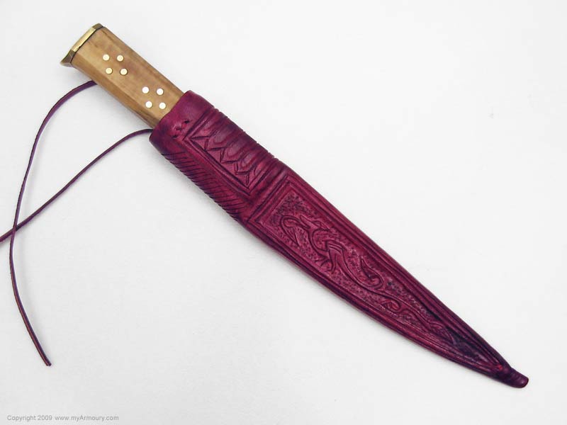 This is a really nice knife by Tod's Stuff of Oxford, UK. It's based off knives and scabbards from the Museum of London book Knives and Scabbards. It's not a recreation of any particular knife, but rather an amalgam of features that would fit a variety of time periods.