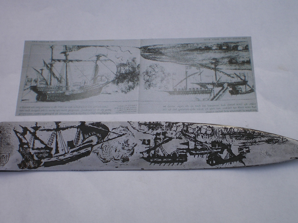 Anyway ... this is only a guess. I defer to those of you who might know better or have actually etched replica pieces. I was simply trying to figure out how they would have done it in previous centuries without modern etching chemicals and techniques. I assume urine and candle wax were very common back then.