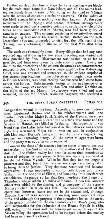 Attached is an excerpt from The Gazetteer of Upper Burma vol. 1, pp.345-46, by J. George Scott and J.P. Hardiman, which gives a bit of detail regarding Burton's time in Burma.