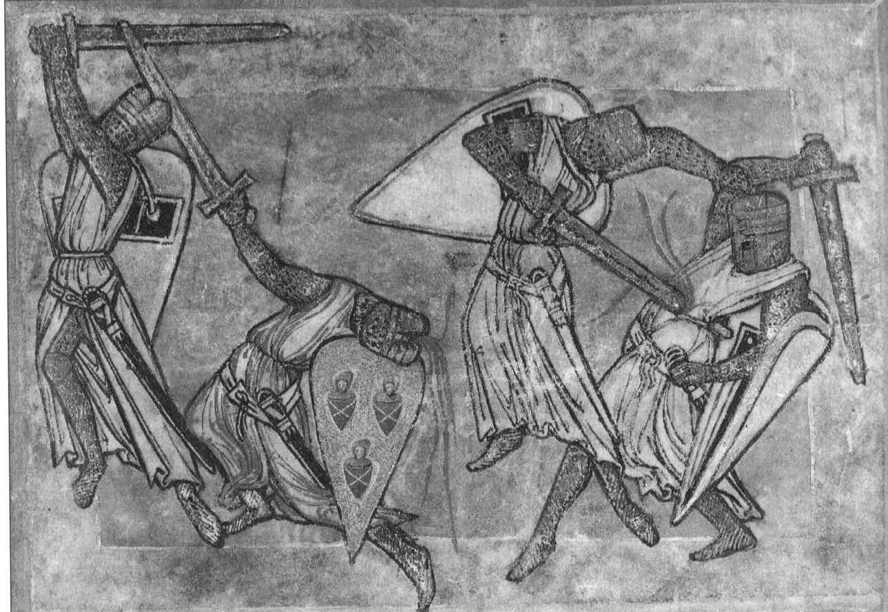 In conclusion, if you have a complete knight's kit dating from ca 1200 to 1325, you can carry a long handled sword in additon to your arming sword. A infantryman or civilan would carry a sword and shield or sword and buckler, respectively.
