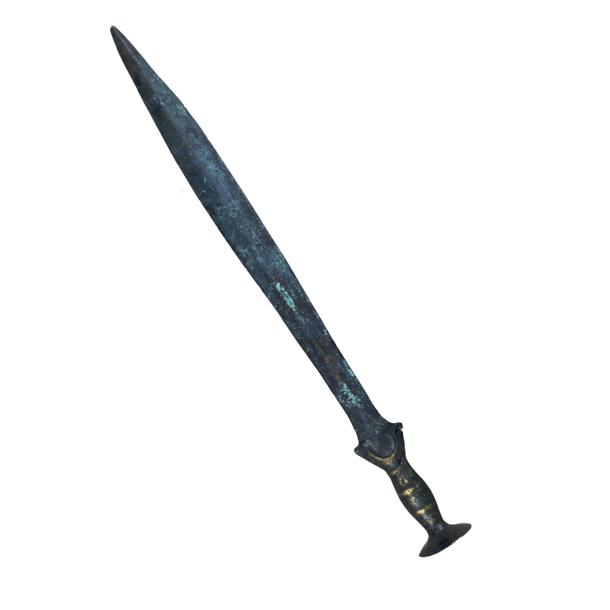 The other one is mystery to me. It looks quite long so it might be a younger sword then the first, but as you mentioned it is made out of bronze so it could be bronze age variant. The meander visible on the blade may reffer to the mediterrain region, the alphabet depicted in the middle part of the blade looks similar to the Iberian or Celtiberian tribes allthough im no expert in this area. I could give you more info if id had closer data about this sword like lenght for instance.