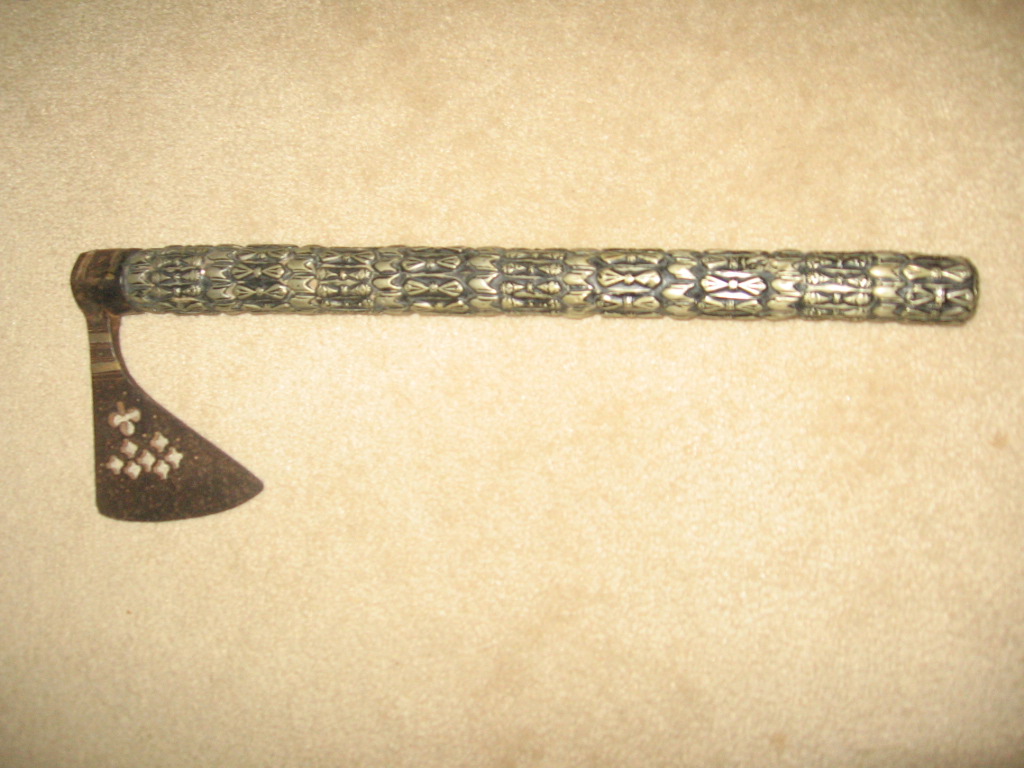 I acquired this Axe in the Middle East. The handle is a reproduction; however I am interested in learning the origin of the Axe Head.