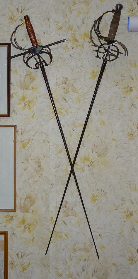 Right in time for Christmas decorations I finished two practice rapiers - since we do not have proper training blades at hand, I had to use modern sports blades so they are in no way accurate, but still useful to learn basic things, and make a nice decor :)