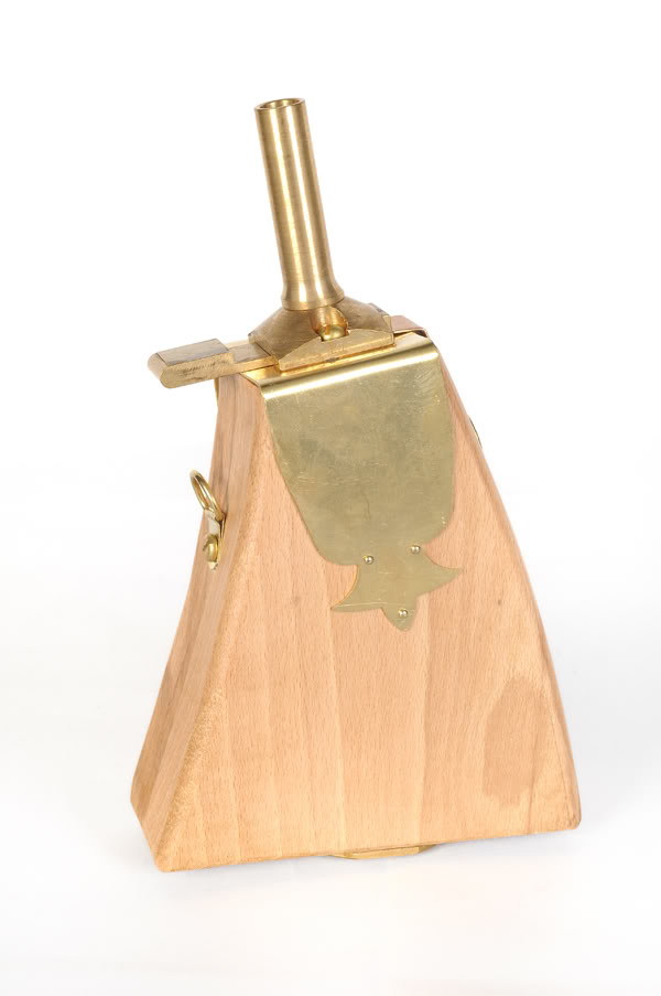 Edit: Found the flask I was looking for (see below - made by Plantagenet Reproductions). They have a sprung cut-off mechanism which isolates the body of the flask from the spout (you fill the spout with your finger over the end, then pour the charge in the spout down the barrel). It also has a blow-out plug on the underside. There are other variations on the principle, but you get the idea!