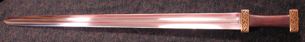 2. The second sword is a Michael "Tinker' Pearce "Early Viking Sword". A nice sword, with wonderful handling qualities, as should be expected from Tinker. But what is it really? To me, it looks like a Behmer type 2 hilt without the metal-plated grip. That would put it in the 5th century AD, a bit early for a Viking sword (even I believe most were found in Denmark and some other Scandinavian lands, which, if you stretch it, might be considered "early Viking" -- way early)....