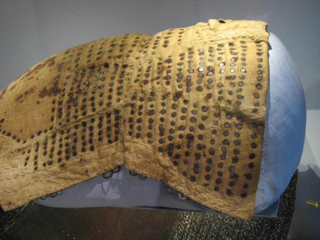 "This is the damaged suit that has been put togeather in a way that is questioned by scholars - it comes from the Livorno area. It is usually considered to be late 14th century, but, sadly, the reconstruction is questionable."