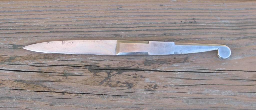 I bought this knife from a fellow CLA member a few years ago. I was told it was made for him by Kyle Willyard of Old Dominion Forge, and judging from the high quality of the knife, I have no reason to doubt that. However, the knife is unmarked. This was a common style of jack knife carried through the middle to late 18th century. Similar ones can be seen in Neumann's "Swords and Blades of the American Revolution (#41K) and Grant's "The Knife in Homespun America" (pg. 160). I am asking $260 which includes shipping and insurance in CONUS.
