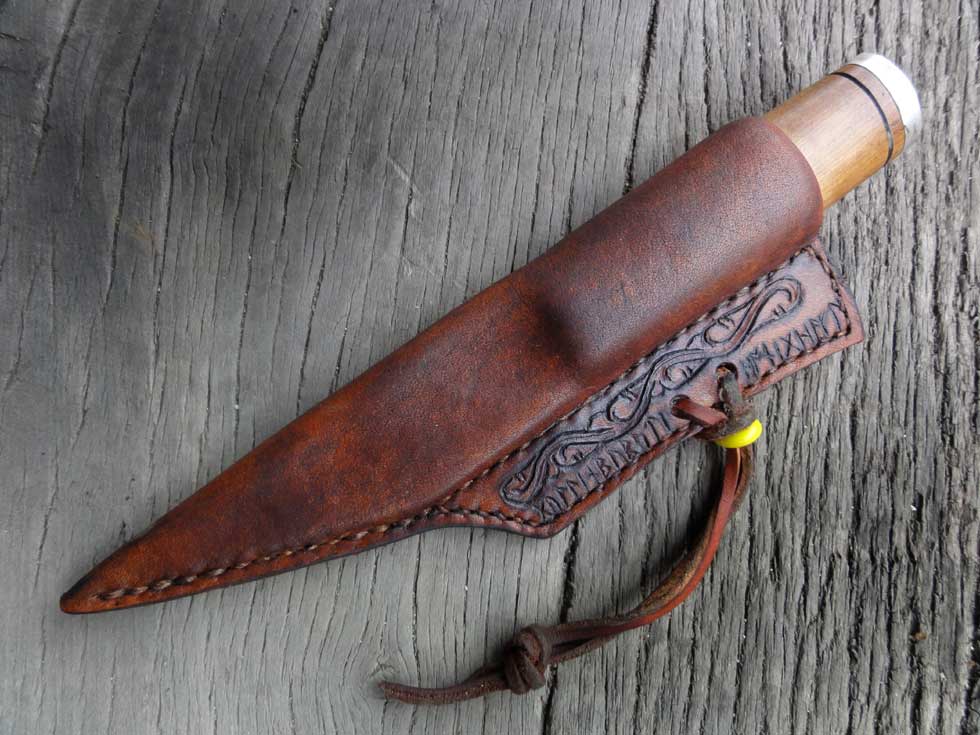 my name (gullinbursti) and the seaxs name are incised and tooled into the sheath