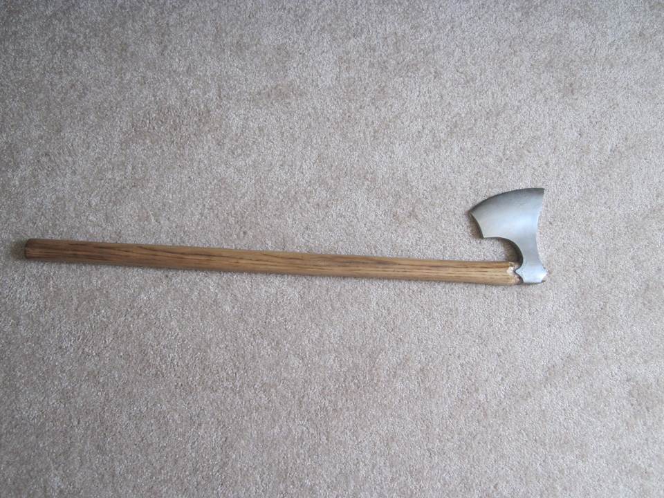 For Sale: Eric McHugh bearded axe. Bought about 2 years ago from Mr. McHugh, who has made a number of custom axes and seaxes; you can find many of them on the Albion Armorers site under in house artisans. I hafted with a 36" long hickory haft, can remove if you prefer. Great axe, selling because my collection has gotten entirely too large. I bought it from Eric for I think 250 USD, looking for 200 with shipping. Any questions or offers, let me know.