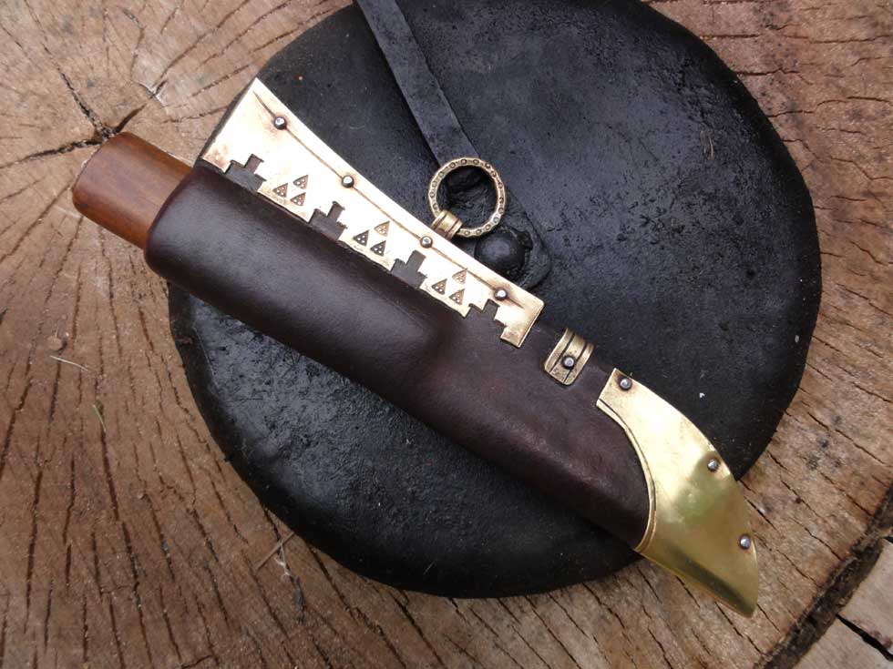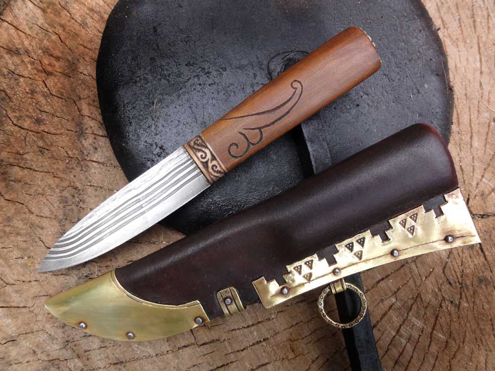 Bolster is antler ad so is the Odinns face in the pommel end. Boxwood handle is carved in ringerike floral tendrils.