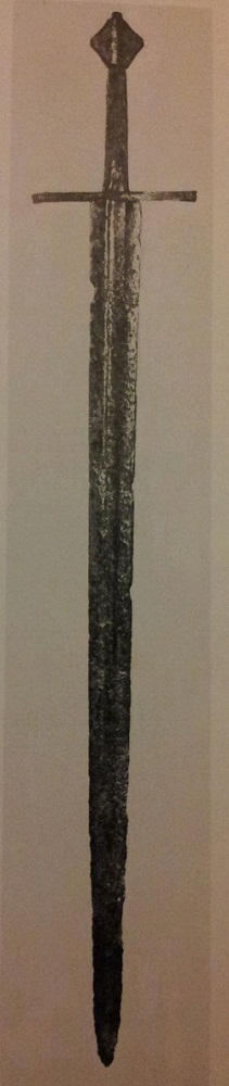 Its a simple but interesting sword, with its big blade, long grip, and type F pommel. The blade is actually pretty similar to that of the sword of St. Maurice (Turin) but the latter has a short grip and Brazil nut pommel. There's a better enhanced photo in 'Sword in Hand' where Oakeshott calls it a typical knightly sword (this strikes one as a bit odd). Oakeshott also talks about this sword in 'Sword in the Age of Chivalry', where he points out the corrosion near the tip and speculates that it might have actually been an XIII originally. But he does not mention this in 'Records' so maybe he changed his mind.