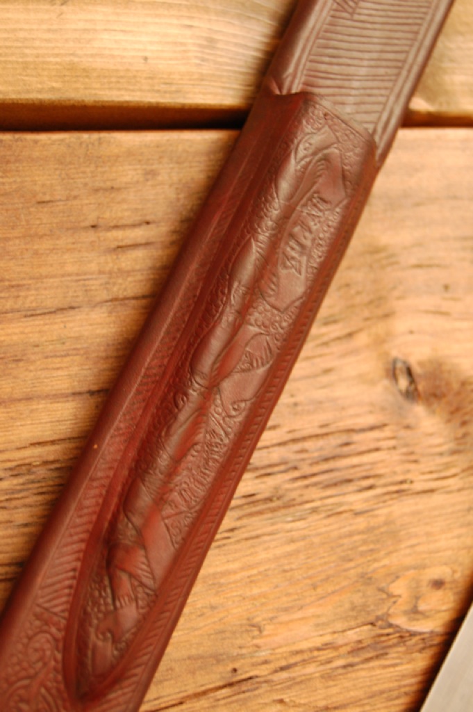 I was lucky enough to see this lovely messer in person when Josh brought it along to the Tournament of the Phoenix this year. I have to say that it is as excellent in person as it is in the photos. I believe the skill of the leather work is exceptional, not to mention the excellent work on the messer itself! It was great to meet Josh and I think he is a top bloke!