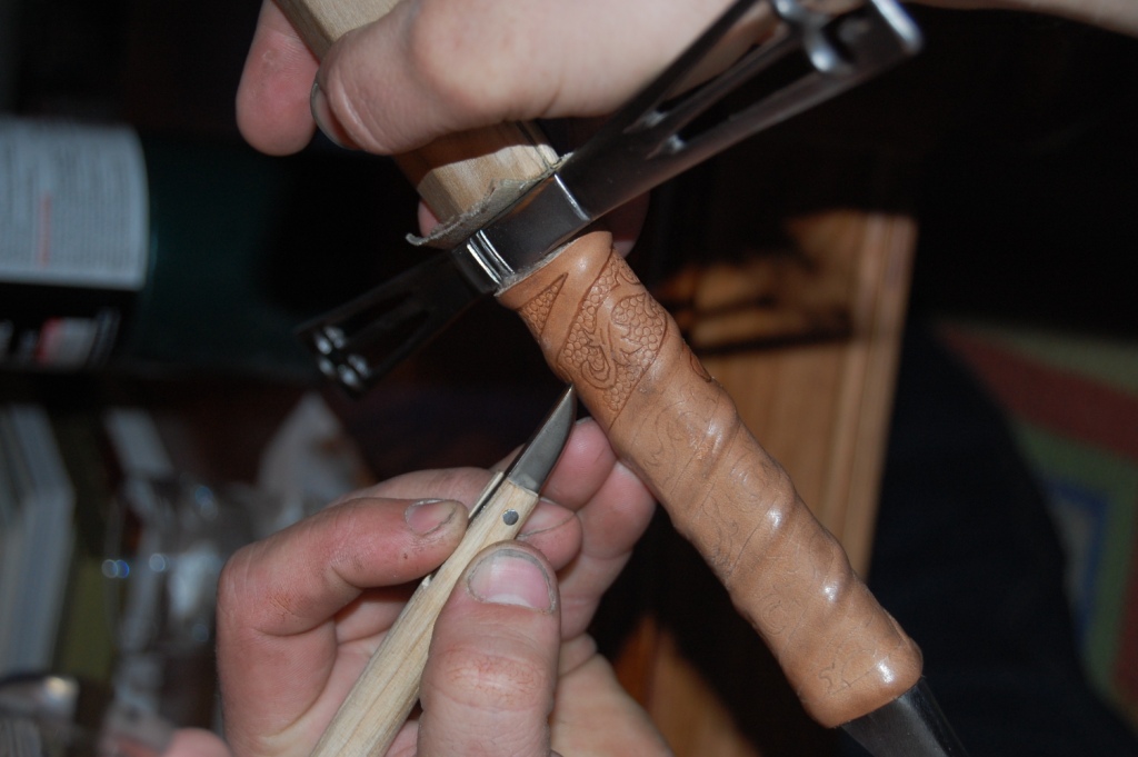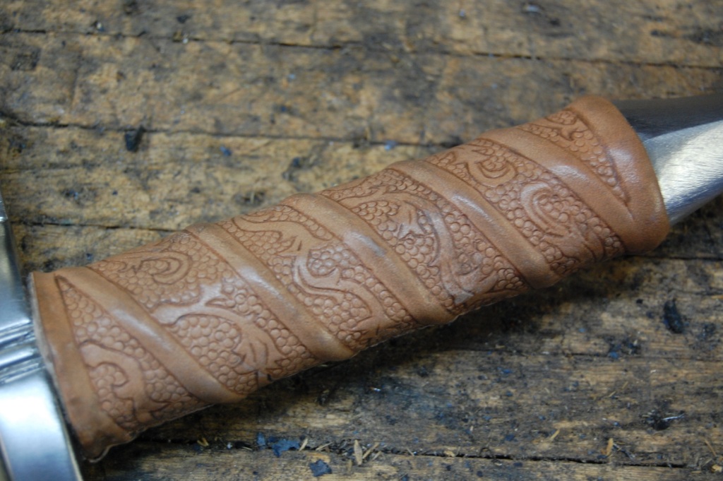 Posted: Sun 24 Mar, 2013 8:07 am Post subject: Historical leather-working technique on a sword grip |