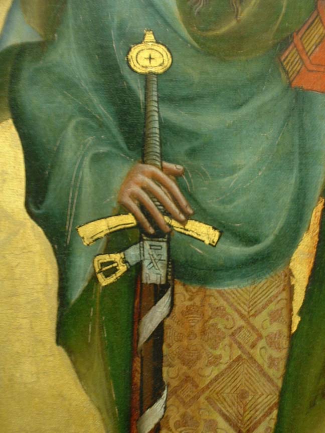 AFAIK, there were no waisted grips qround 1400, so a simple tapered grip would probably be most appropriate. I think a tapered grip with spiral riser like Albion's Ljubljana would look really good with that blade and hilt furniture. Here are a few pics relevant to the end of the 14th beginning of the 15th century. I'll see if I can dig up some more for you. Awesome choice of sword to have replicated, I really look forward to seeeing the result. Do you plan on putting a guard-leather/rainguard/chape on it?