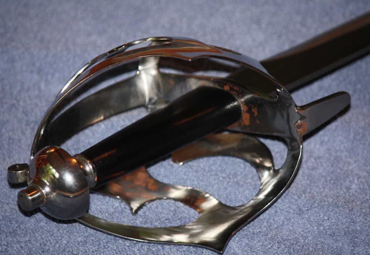 There's some rust on the interior of the basket hilt (I included a picture showing it) but the blade is just fine. Here's a review someone made of it, albeit in pirate lingo: http://www.sword-buyers-guide.com/pirate-cutlass.html (his pictures match the design of my hilt/embellishment). His blade was obviously sharpened, so don't go cutting any tables up with this one until you have it sharpened as well.