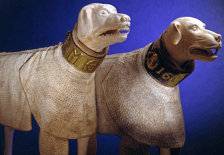 Here's another, where the dots on the red chausses of the left-of-center figure doesn't match the rows of commas on the hauberk.