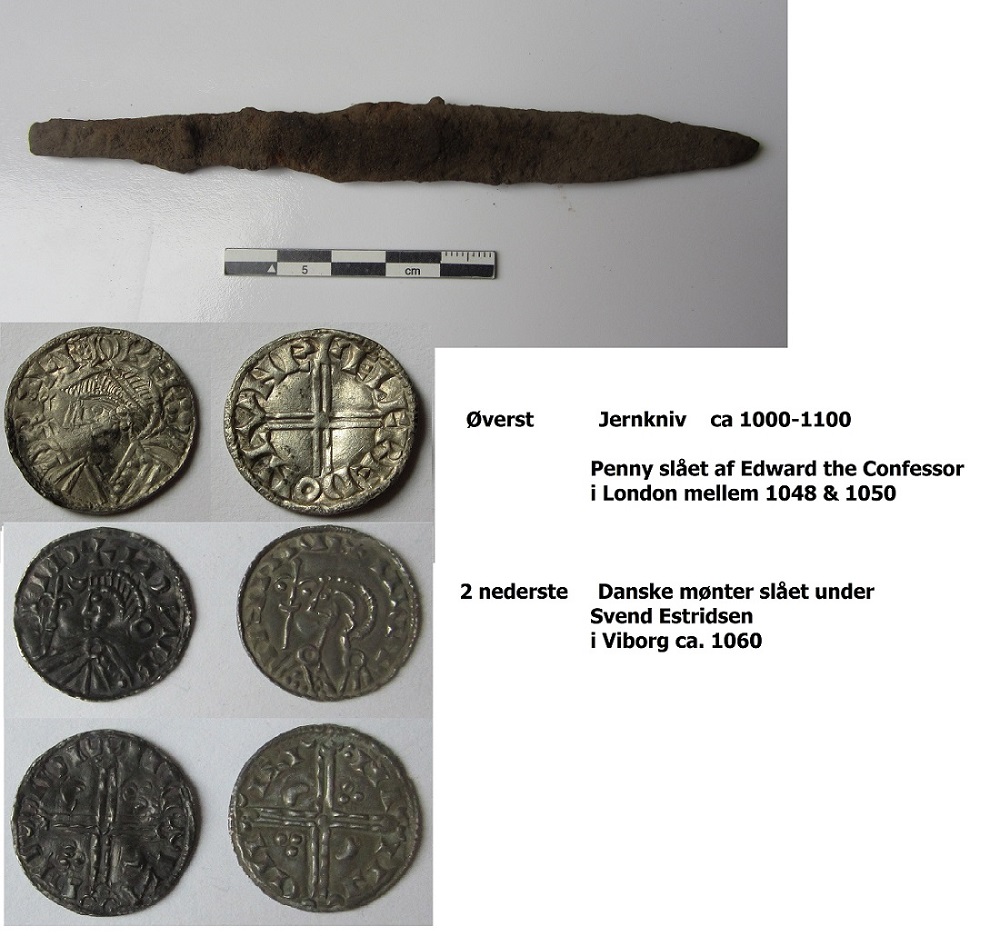 one of the knives and 3 of the coins from hoard.