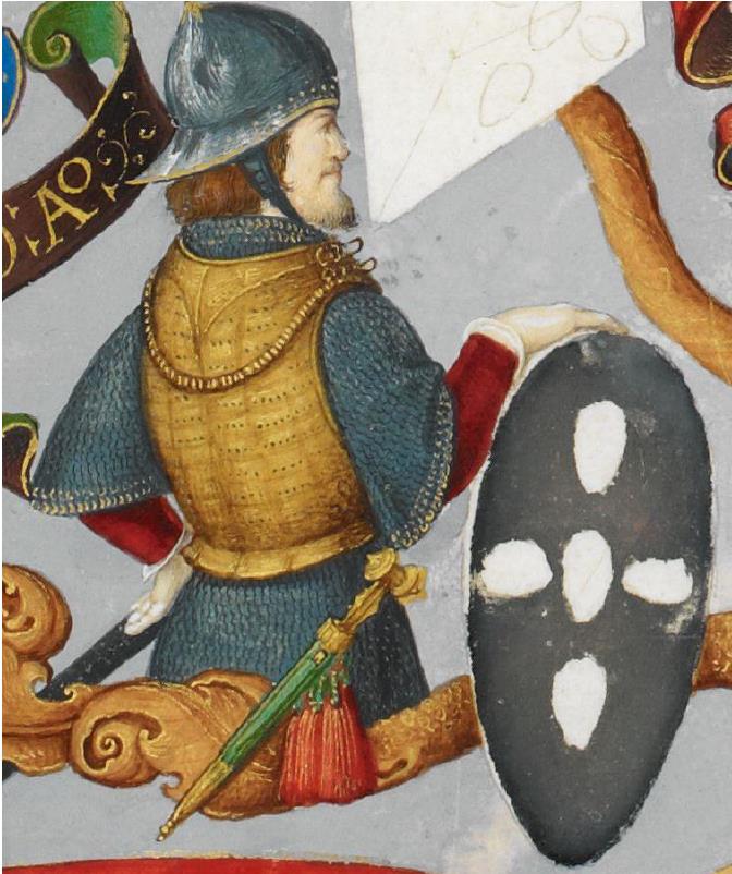 Leaves from the Genealogy of the Royal Houses of Spain and Portugal British Library Add MS 12531 1530-1534 http://www.bl.uk/manuscripts/FullDisplay.aspx...d_MS_12531 Example from folio 7 recto attached. Ear daggers seem quite popular in Spain Portuguese swords frequently feature a "crab" or "testicle" guard. http://www.arscives.com/bladesign/discoverieswords.htm I don't know about sources from Brazil, but the Portuguese Gentleman of Elvas accompanied the entrada of Hernando de Soto in the southeastern United States. You might find some differentiation between Spanish and Portuguese armor in his descriptions. http://www.floridahistory.com/elvas-1.html |