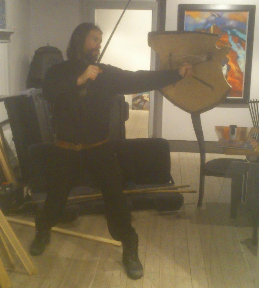 Do not hold the shield flat across the body, angle it 45 degrees forward, and put your hand behind the front corner. You now have a very strong guard that allows for quick strikes at your opponents upper targets (whatever hit zones you are using)