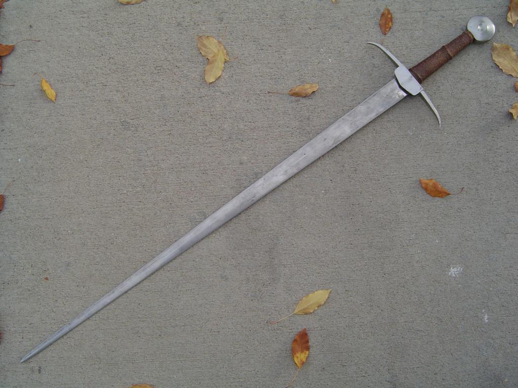 This sword is an older MRL/Windlass offering (I bought it in 1998). I believe it was called the Medieval Bastard Sword, or something similar, and appears to be based on a sword from the Glasgow museum (XVa.2 from the Type XV Spotlight article.