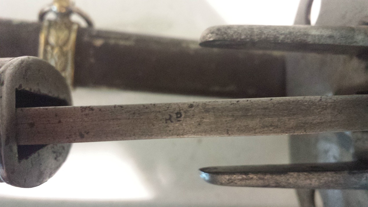 The only marking I can find on the sword and scabbard is on the back of the blade and appears to say RD. I've attached the pictures I took, please excuse my feet!