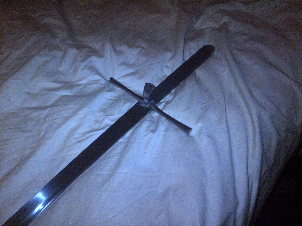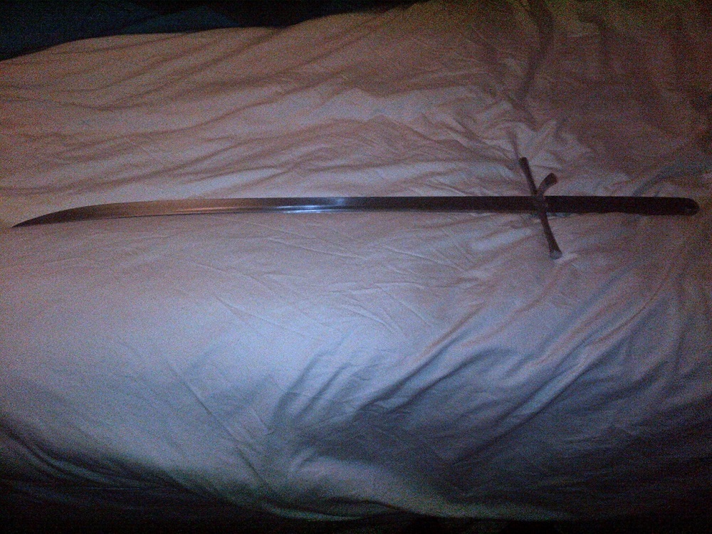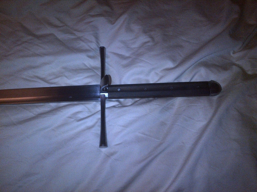 I've decided to part with this sword. It is a standard Albion Knecht (see their website). Condition is lightly-used with some darkening on the hilt. Blade is clear and is close to razor-sharp (factory grind), never used for cutting practice. From their website, specifications are: