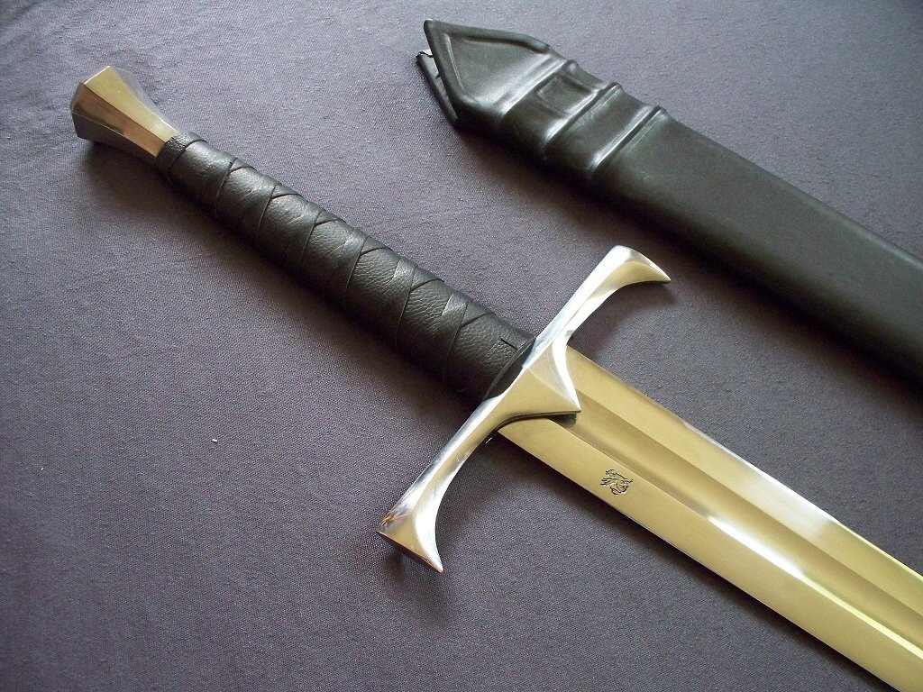 Here's another picture of the sword. It's brand new. I bought the sword, realized that it is no longer the model that is 42.5 inches and was convinced to have a maker make a custom sword for me. This is a nice sword but it wasn't to my specifications and DSA gives no refunds.