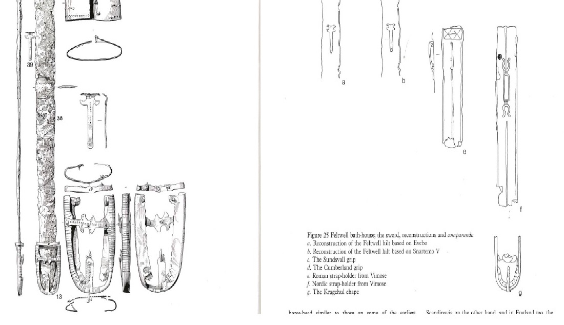 2) Look at mid-fifth century blades from a wider context. The best candidate from Britain would be the Feltwell spatha, which was hidden in the hypocaust of a bathhouse. Probably brought to the country by a Germanic warrior (possibly invader, possibly foederati), the blade, hilt and scabbard fittings are well preserved. The organic hilt fittings (wood or horn) have not survived.