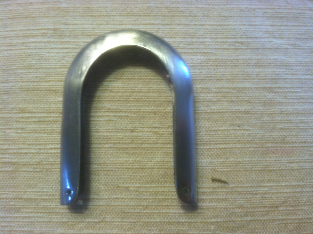 The other picture shows a nail in relation to the chape (the nail is to the lower right of the chape). I did purchase a brass decorative latch kit at Rockler and used it to replace the worn one on my GF's sewing box. The nail size is perfect but the color is wrong.