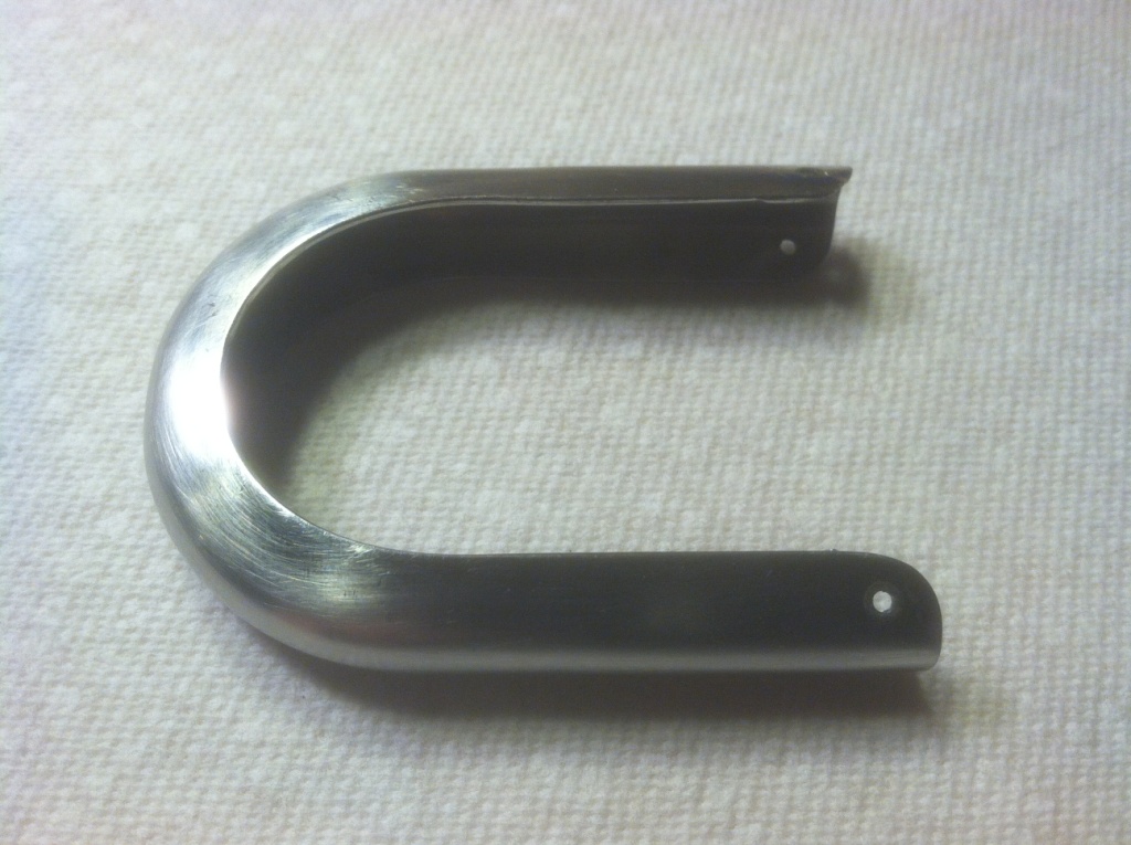 I did run into a minor issue that I didn't see addressed in other posts (and if I did miss it, well, that's just a testament to the enormous amount of information the myArmoury has accumulated over the years). The chape on the Norman scabbard (I'm reusing chapes from the original scabbards the swords came with) is U-shaped, designed to be held in place with tiny nails. The holes are visible in the picture. I didn't keep the original nails, and now I'm having a heck of a time finding replacements. I mean, these nails need to be tiny, about 4 mm long.