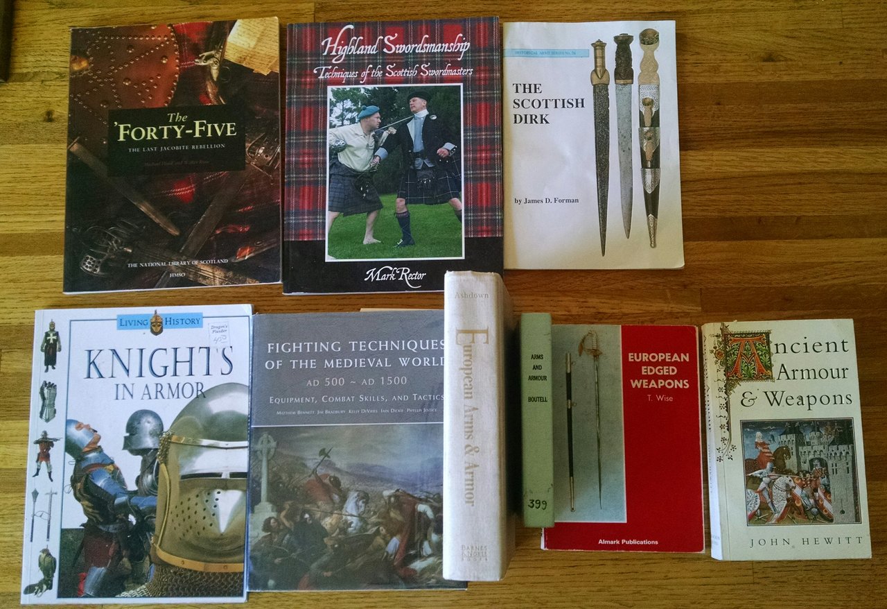 I'm putting what remains of my arms and armor library up for sale. Some of them are so low in value that packaging and shipping them individually seems uneconomical, so I am asking buyers to buy at least $10 worth so I can combine shipping.