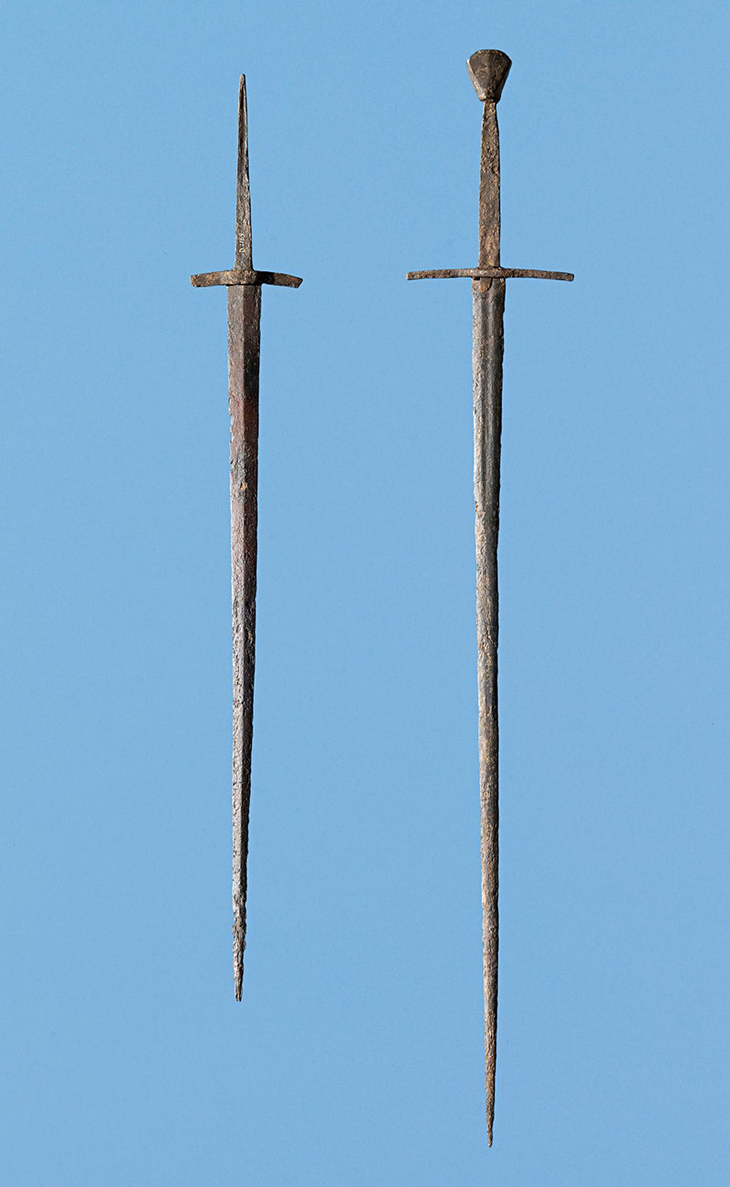 The second sword (one on the left) was found in 1877 during the digging of a ditch.