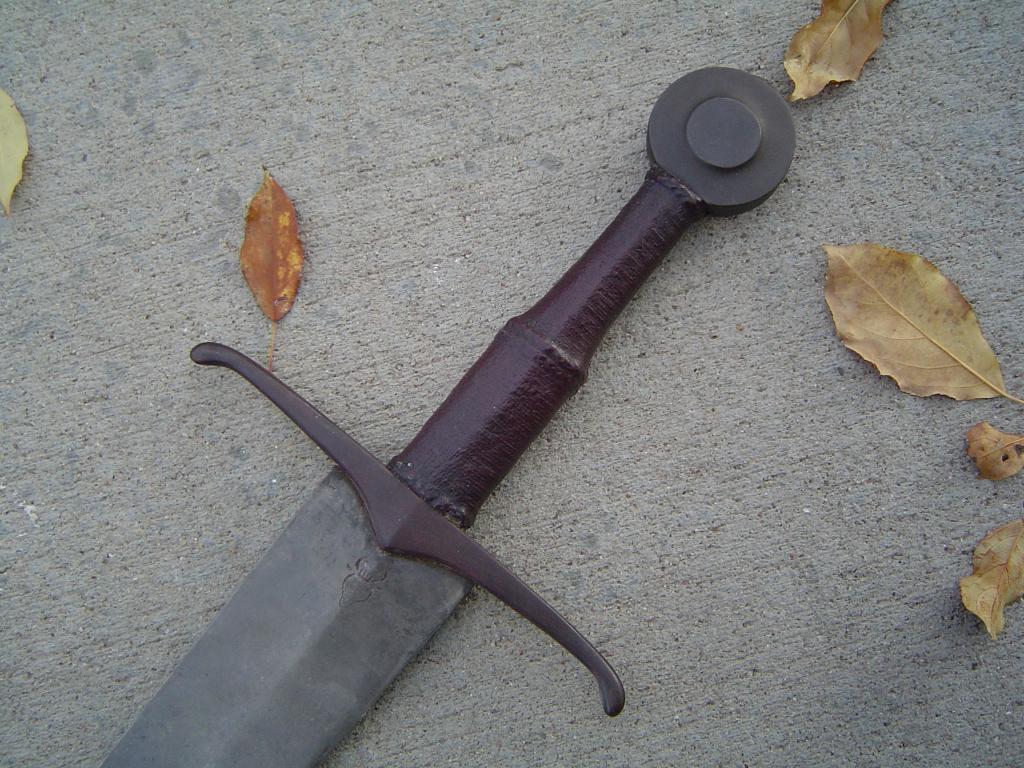 | Quote: | | The pommel and guard have been slightly reshaped and refinished. The grip core has been built-up with J.B. Weld and completely reshaped. It has been given a cord under wrap and covered in burgundy leather. The guard and pommel were browned with Birchwood Casey Plum Browning Solution. The blade as been aged with a mustard treatment which looks nice but can be easily removed with very fine sandpaper. (In other words the blade has never been rusted, just darkened with mustard. There are no pits. As a matter of fact the mustard actually gives a very fine polish.) |