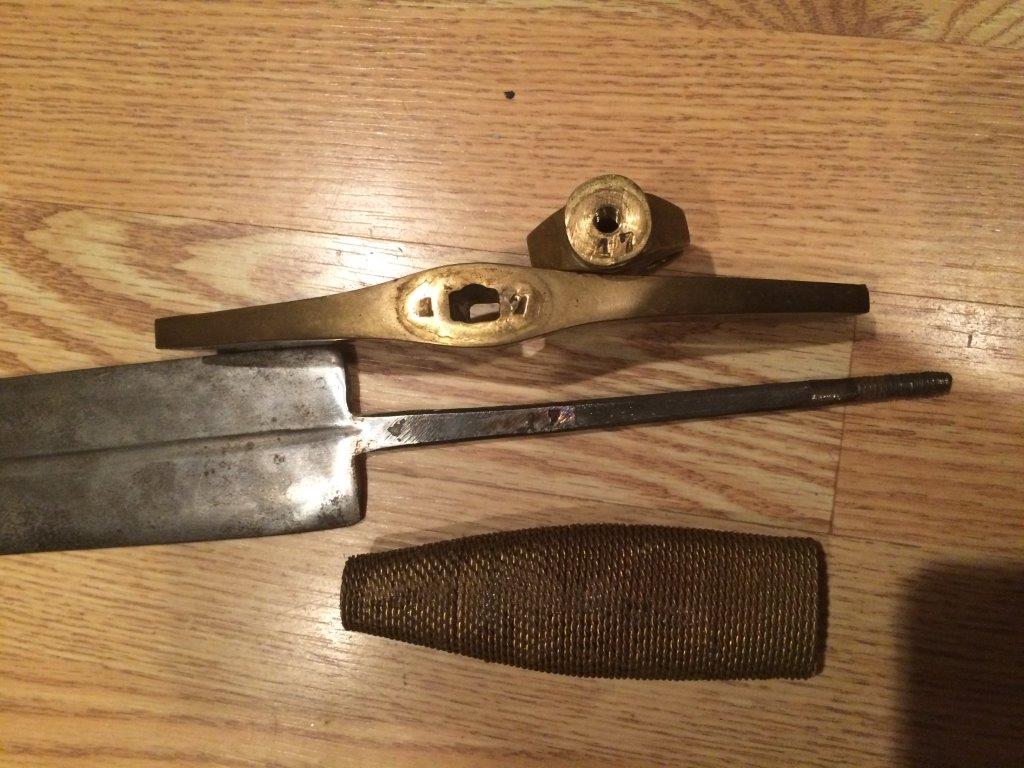 As for quality, I don't know real well. I recall this piece as being an odd combination of elegance and blockiness. The blade was ok, the guard was actually quite nice in thickness, but obviously has way too much height, the pommel was actually quite nice, etc. The blade is a carbon steel, but pretty soft if my memory serves me correctly (there were some noticeable nicks from the light sparring mentioned above, and that was after he had filed the worst of it out). You will not be damaging an heirloom quality piece if you clean this up or let people handle it. With some effort, you might make a nice sword out of it, but I would speculate that you would have better results using a Windlass/MRL blade as your starting point.
