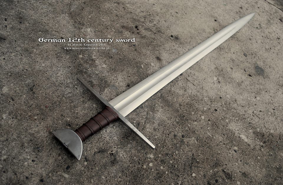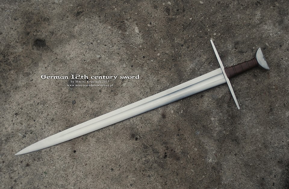 The project is based on a sword that was apparently sold by Christie's in 1991. It's a classic Brazil nut design with fairly large proportions (blade 88.4cm. Overall Ilength 102.3cm). The blade would be classified as an Oakeshott X transitioning to Xa. Its hard to date such swords as they were popular from the end of the 10th century through the 12th century, perhaps even 13th in some regions of Europe. However this sword has a few features (rather strong profile taper like an XII, curved cross, and rather long grip) that might put it safer in the later period; 12th century. There are also some partial large inscriptions framed by crosses on one side of the blade that might help in the dating if one has expertise in that area (I don't).