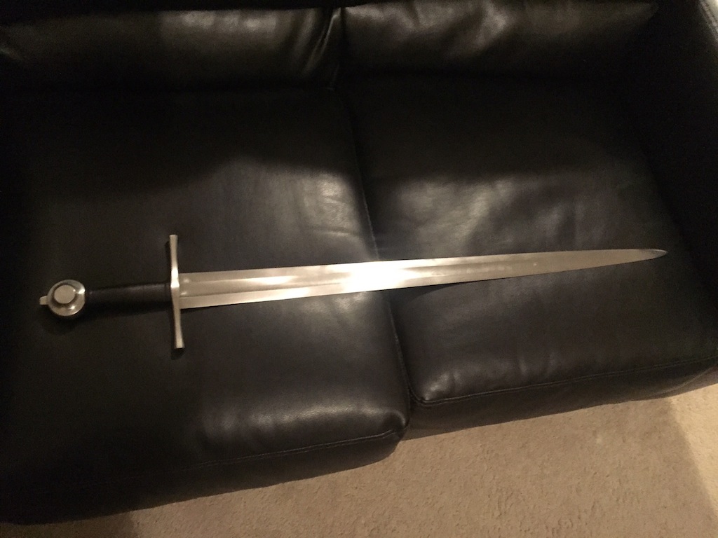 The time has come for me to part with my Albion Knight. It has been used for cutting, but only 5 or 6 times, and not since 2011 or 2012. It's just been sitting since then. There's arguably a slight deformation at the tip - the profile taper doesn't look exactly symmetrical. I try to show this in the pictures of the tip, but it's not very dramatic at all.