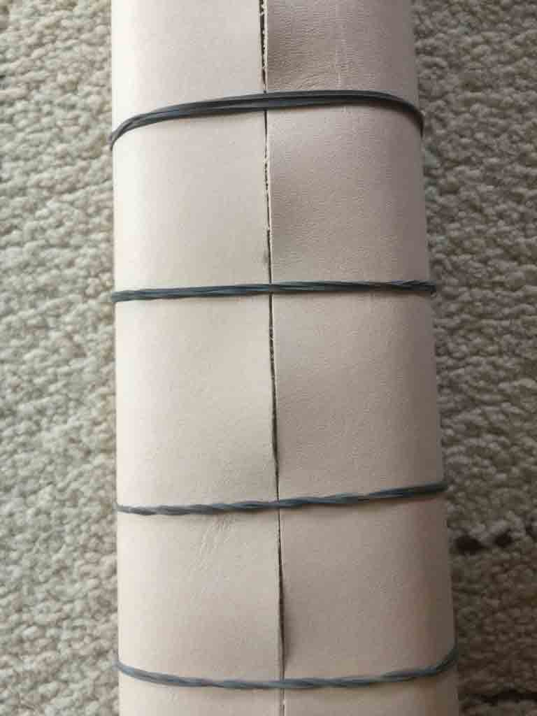 - The first time I tried my hand at this the I made the leather about 10 cm longer than the scabbard and soaked it but it shrunk to the point where it was about 1 cm too short but there seemed to be little shrinkage breadth wise across the scabbard. Does it matter in terms of shrinkage whether you cut the leather strips head to tail or back to belly?