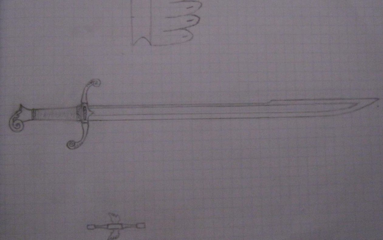I ran across my original drawing I sent him ,of the blade he had, and the hilt I wanted.