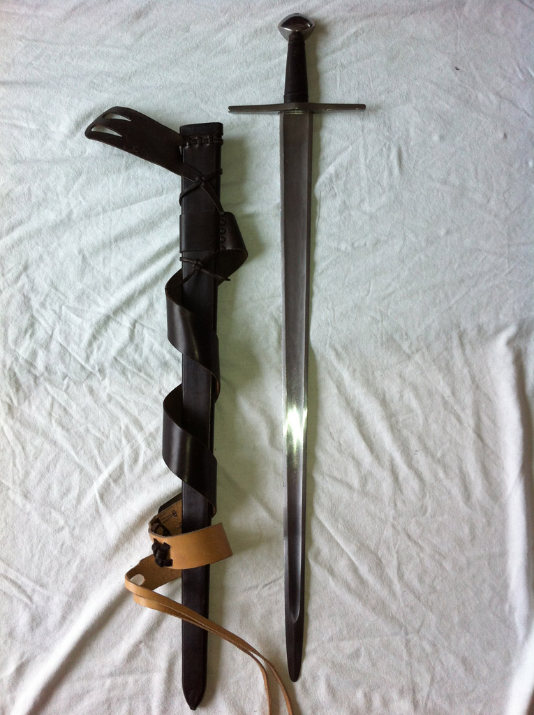 These extremely long onehanders have been described as cavalry swords, but personaly I would like to try them out in combination with the kite shield. (reference to my kite shield project discussed in another thread.)