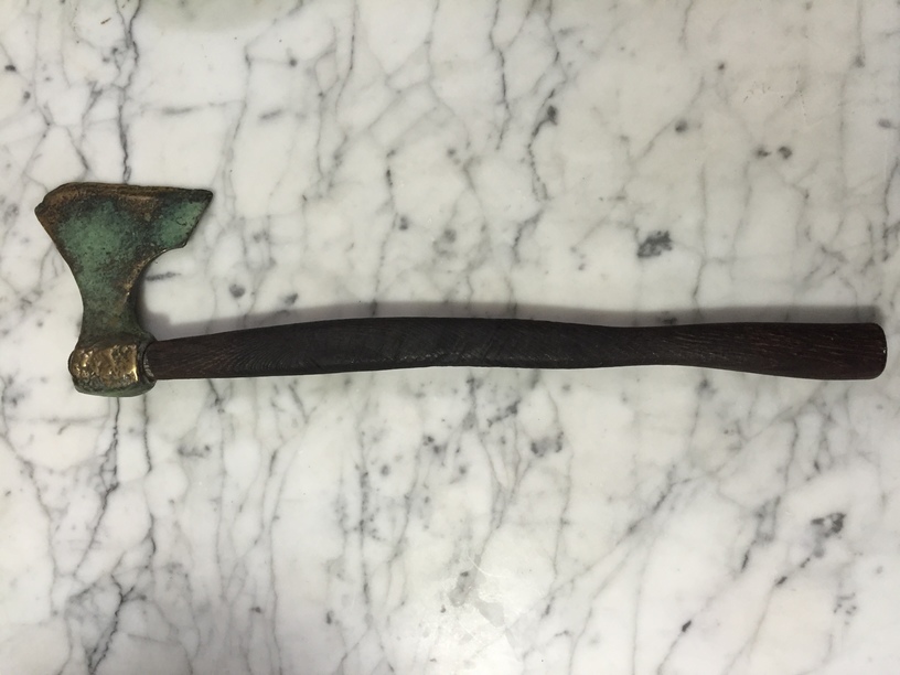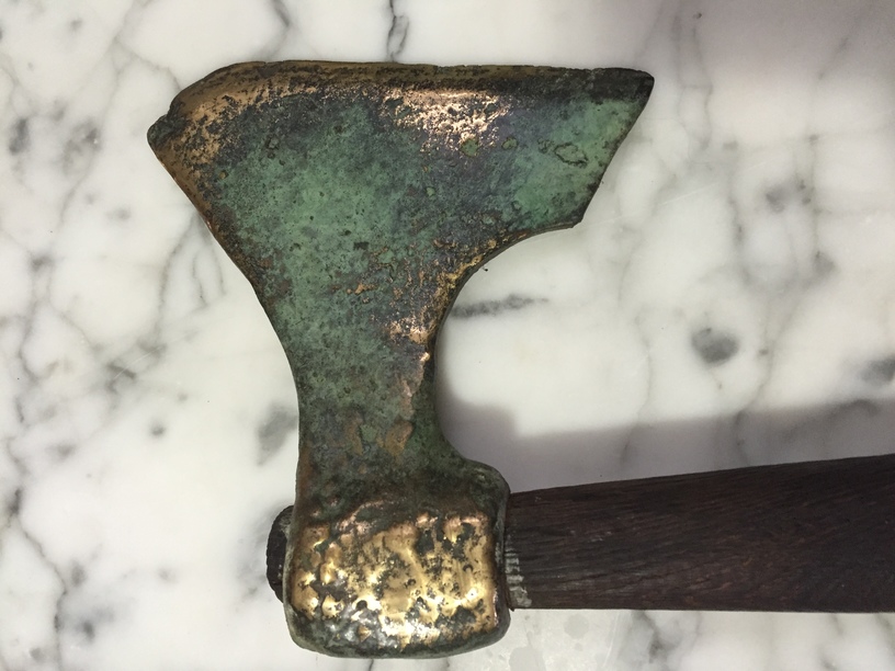 A friend of mine sent me pictures of this axe and asked if I knew what type it was. It seems to have a patina which is unusual for the shape. We don't have any other information except it was found recently in the basement of a house in Philadelphia, PA.