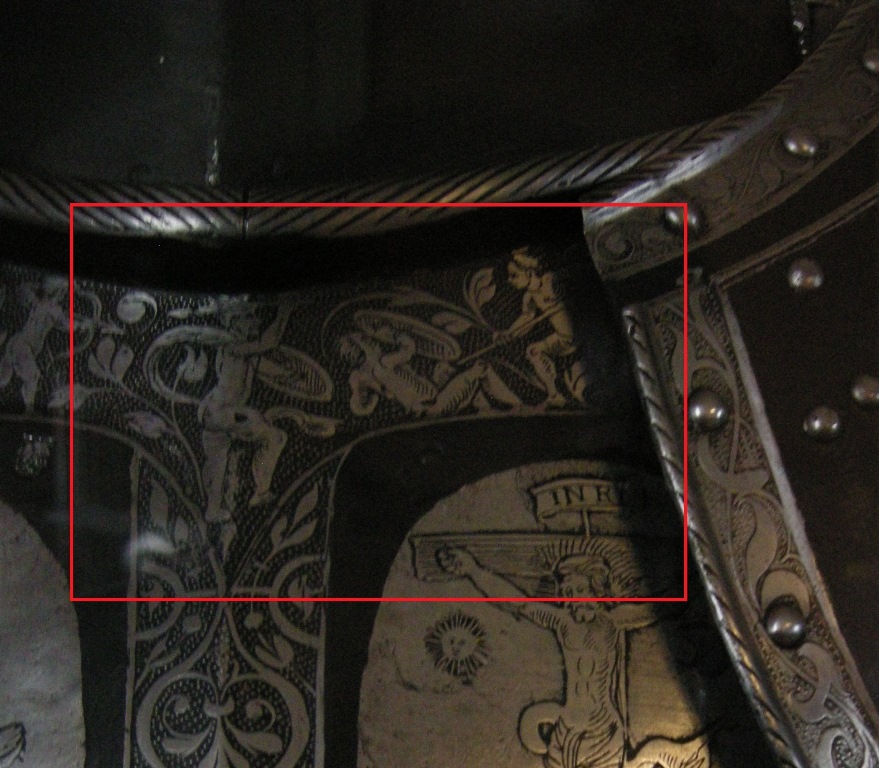 Specially the ornaments in order to compare with a burgonet, which is part of my collection, belongs to a suit of armour. Both the suit of armor and the burgonet come from the Higgins Armory. In 1995 Michele Austin Muten from the Higgins armoury’s museum catalogued the helmet like being part of Gilbert Von Saint Hilaire’s armour. http://users.wpi.edu/~virtualarmory/Collectio...anum=610.a