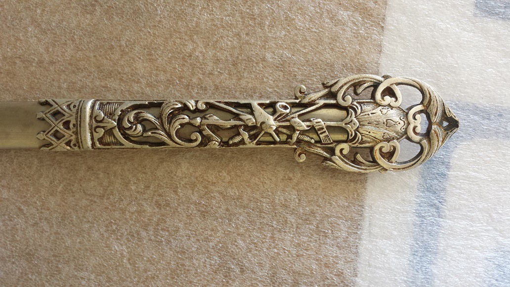 But I also hear that the symbolic meanings and rank terms can vary a bit from lodge to lodge. And that your best bet, if you can determine what lodge it belongs to, is to contact that lodge (assuming they are still operational) and see if they have any information on the sword.