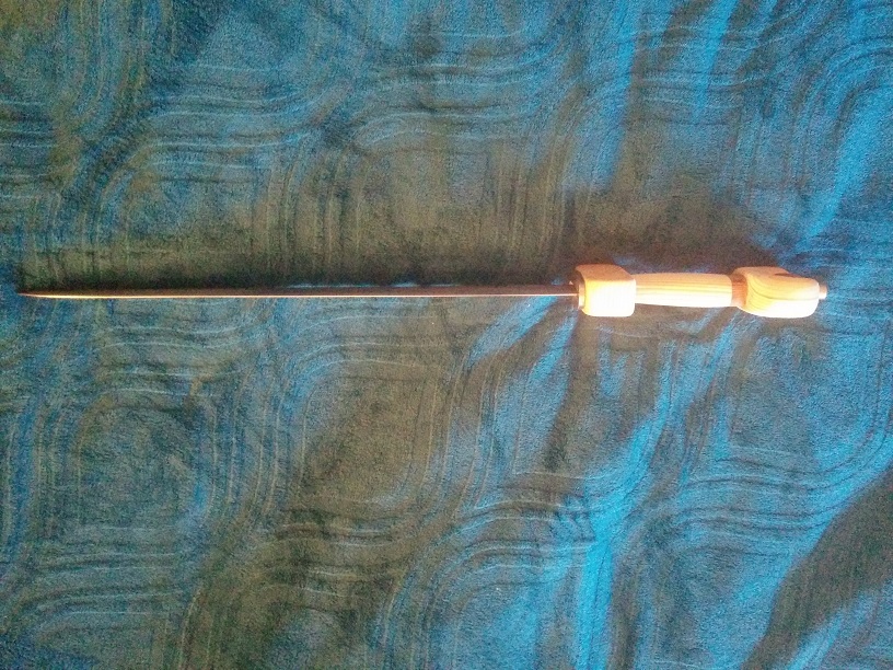 Disclaimer: This is my first modified/ homemade sword. There are many imperfections, especially on the blade. I have tried to photograph these to fairly represent the sword, as this is by no means a fine work of art. Some of the flaws are due to my own mistakes, and others are due to the Windlass blade not being great to begin with. The blade has some dents, and it is somewhat scratched mostly where I have tried my best to sand out the ricasso. The steel isn't very even throughout the blade. It is bent, although not terribly so. It will require an edge to be put on it if sharpness is desired. If you have any interest in this item I highly recommend you contact me about any other defects it may have. I am hoping this will find a home with a re-enactor of the Irish Iron Age. For the record I do not recommend the Windlass pompeii gladius for a project piece!