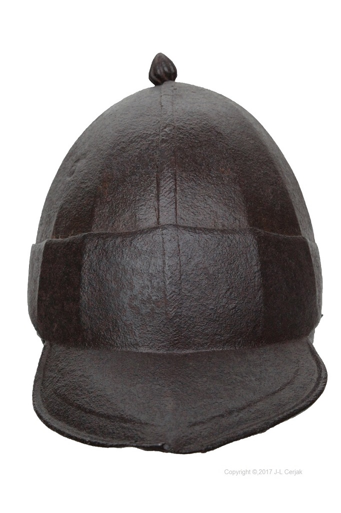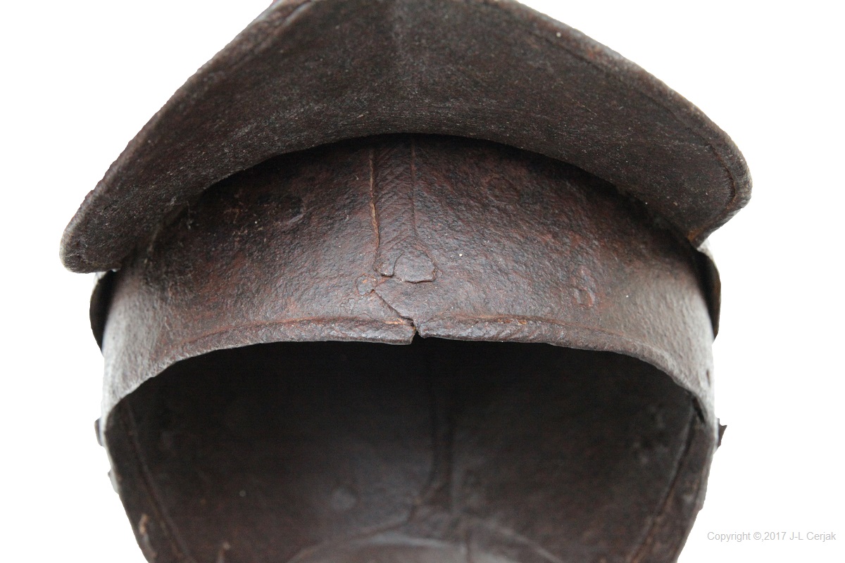 Heavy French siege helmet Excavated in Bourgogne With Two pieces skull faceted in fourteen sections with a pivoted peak