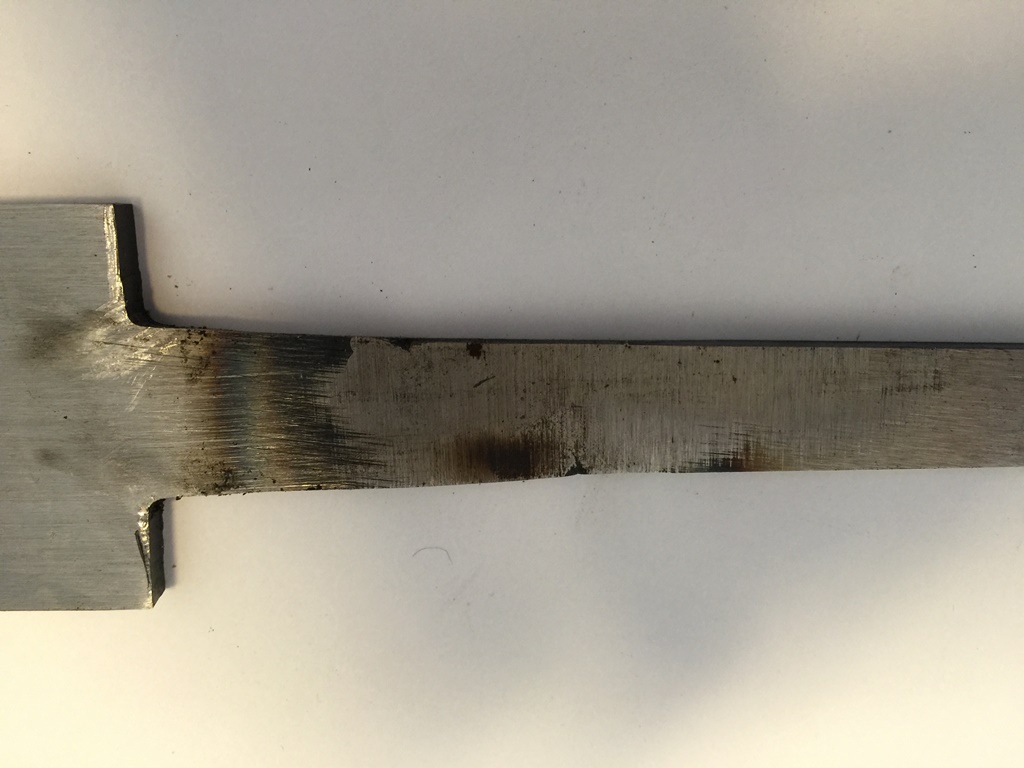 - when I removed the handle, I noticed a big weld looking section (see pics Hanwei weld and Hanwei weld 2), which has been like sandpapered with a really rough sandpaper, file or something of sorts (you can see the lines from the pics how they go different directions)