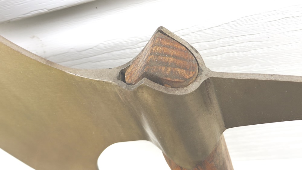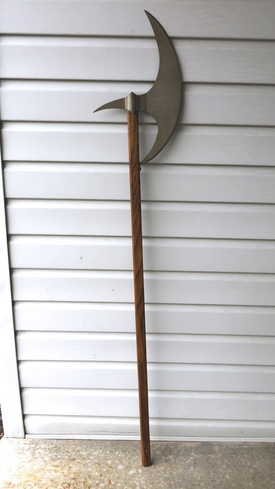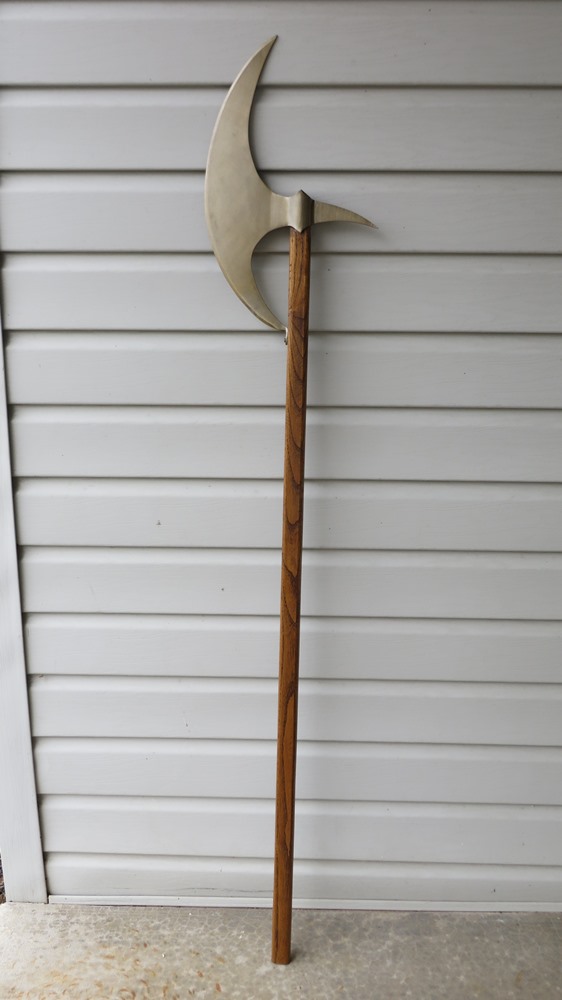 The axe is in excellent condition and has spent its entire life as a wall hanger. The axe head has developed a very slight light brown patina. The axe head is very securely attached to the pole.