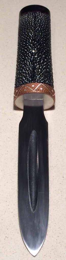 You made a Japanese sgian dubh! Laughing Out Loud I like it! The ray skin looks great, and that blade is just right for a nasty little secret surprise! Good job! Big Grin .....McM