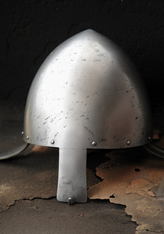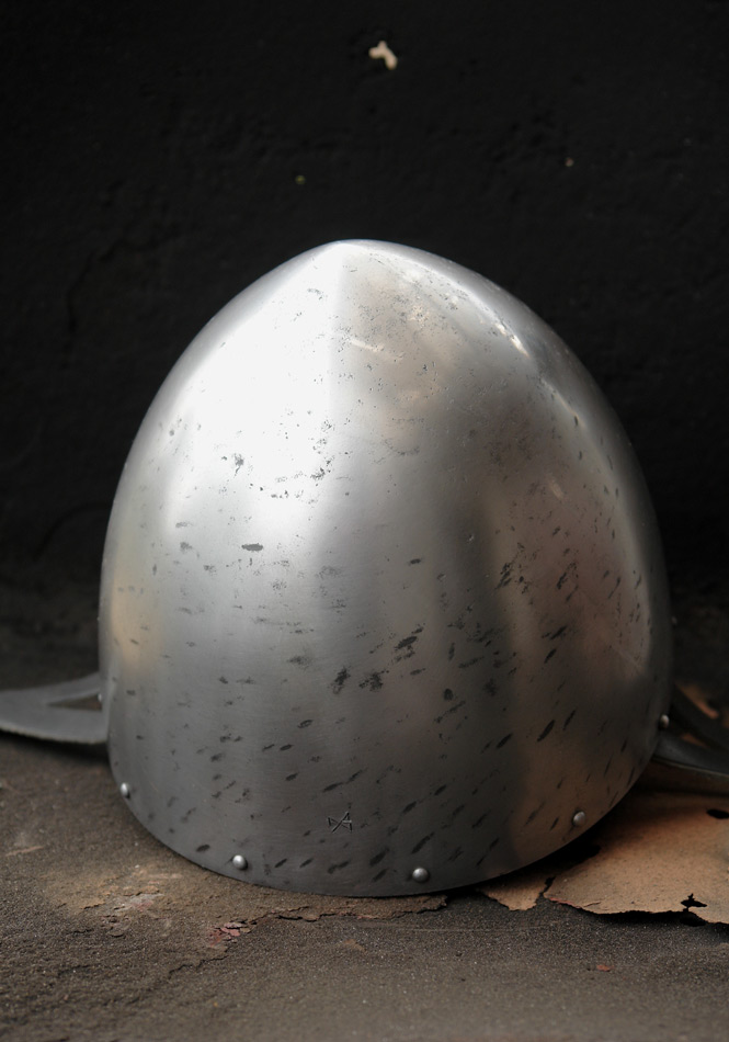 Simply conical nasal helmet. The bowl raised in single piece (2mm thick). The nasal forge-welded (3mm thick)