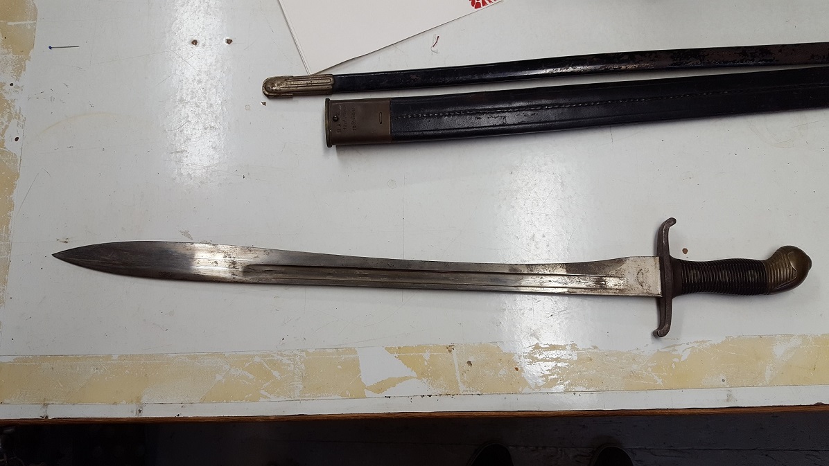 It's a neat looking weapon. We're all familiar with the American Civil War era artillery short swords that look like some sort of neoclassical, art deco